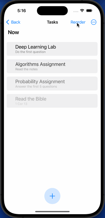 - Task management app with the ability to save and persist task data to local storage using UserDefaults